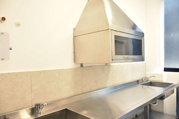 Sala de desinfección de Alto Nivel (DAN) Garantiza seguridad e higiene en los procedimientos médicos. Primeramente, el equipo de endoscopía ya utilizado ingresa y se le realiza una limpieza inicial. Luego, pasa a una Desinfección de Alto Nivel con ayuda de diferentes agentes químicos. Se coloca el equipo dentro de una batea con presión negativa, para que los gases puedan llevarse al exterior. Finalmente, se lleva a un área limpia donde se enjuaga y se realiza el secado con aire comprimido para que el equipo sea almacenado para el siguiente procedimiento.