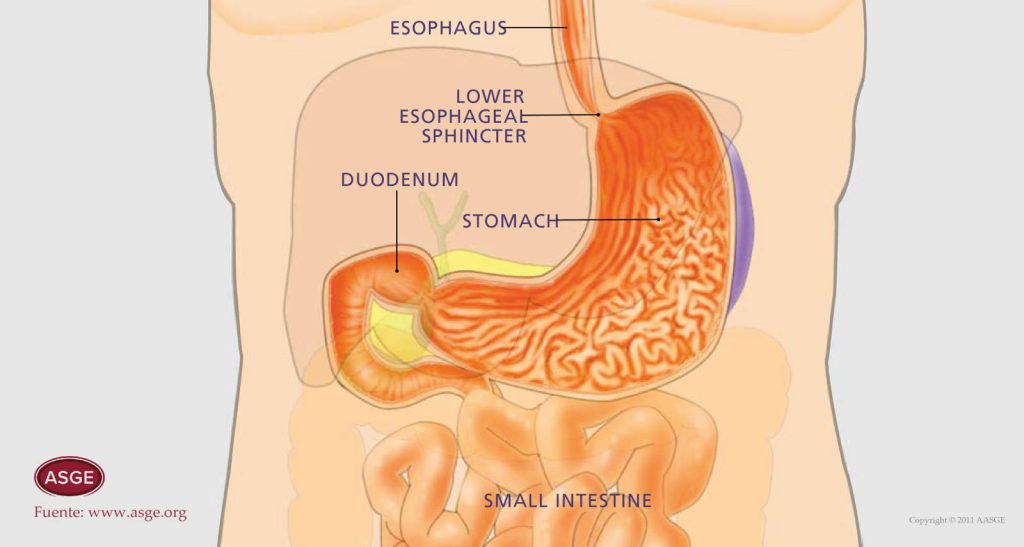 La endoscopia superior permite al médico examinar el revestimiento de la parte superior del tracto gastrointestinal, que incluye el esófago, el estómago y el duodeno (la primera parte del intestino delgado). El médico utiliza un tubo delgado y flexible con lente y fuente de luz propias, llamado endoscopio, y visualiza imágenes en un monitor de video. El endoscopio se introduce por la boca, que permanecerá abierta con la ayuda de un abreboca y se progresará por el interior del tubo digestivo superior.